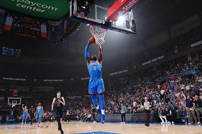 本场比赛中,雷霆的先发外线大闸吕冈茨-多尔特(Luguentz Dort)的表现也是相当不错的,他也是展现出了自己各方面的才能。多尔特全场出场21分20秒,投篮8中5,三分线外6中4,得到了14分1助攻2抢断的数据,还有1次失误和1次犯规,正负值为+15。多尔特在本场比赛中难得找到了自己的手感和投篮感觉,命中了多记三分,在外线投篮方面起到了很好的效果,展现出了自己在这方面的才能,打出了超出预期的表现。不仅如此,多尔特在防守端的表现也是相当不错的,同样是发挥出了自己在防守端的特点,展现出了自己超强的个人防守能力。多尔特在本场比赛中算是发挥出了自己在各方面的才能,在攻防两端都起到了很好的效果,这也是球队轻轻松松能够战胜实力不俗的对手的重要因素。