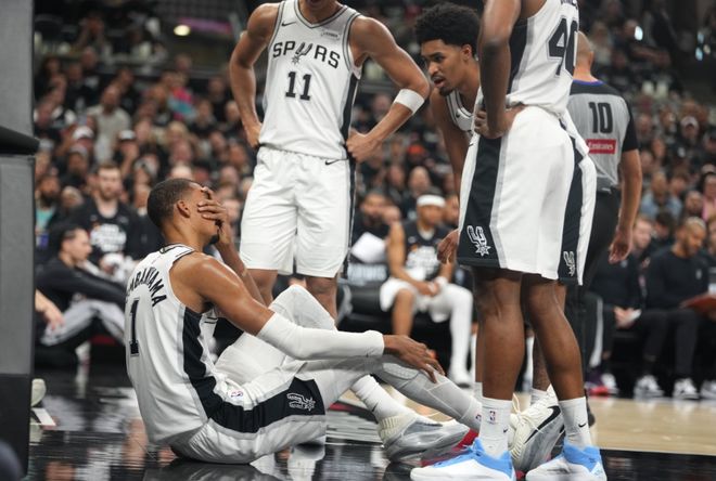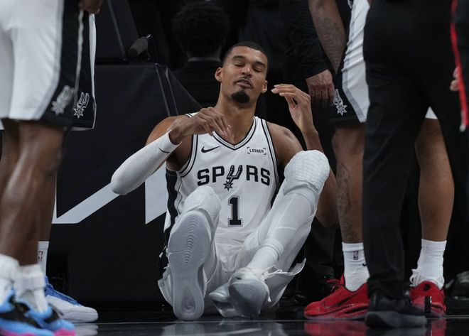 在系列赛G2中的第二节比赛,文班亚马篮下对抗遭遇霍勒迪“撤凳子”防守,结果文班亚马身体失衡,面部着地重摔,导致脑震荡提前退赛。赛后,文班亚马确诊为脑震荡,从而正式触发NBA的脑震荡保护协议,所幸他没有颅骨和颈椎附加损伤。
